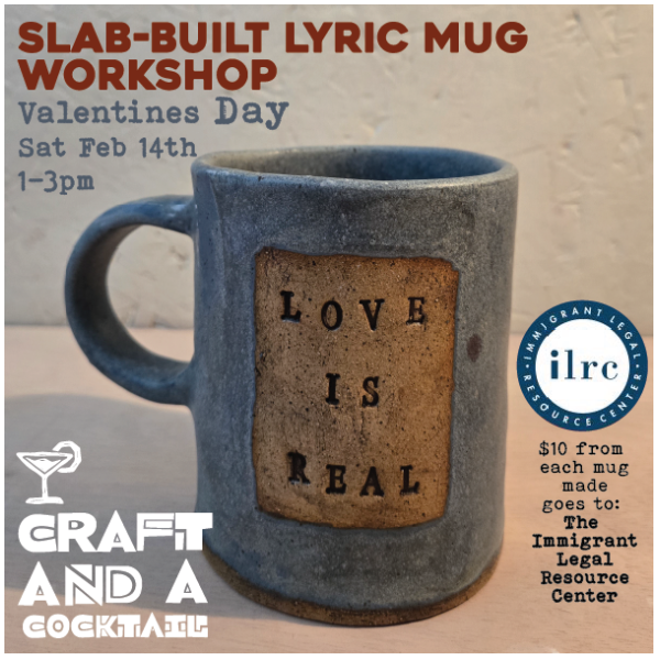 $10 from each mug made will be donated to the Immigration Legal Resource Center (ILRC) https://www.ilrc.org/ — a nonprofit that provides legal training, resources, and advocacy to support and protect immigrant communities nationwide. While we typically focus on local charities and try to keep our public programming non-political, this cause feels important, timely, and aligned with our values, and we’re grateful to support it through making.
